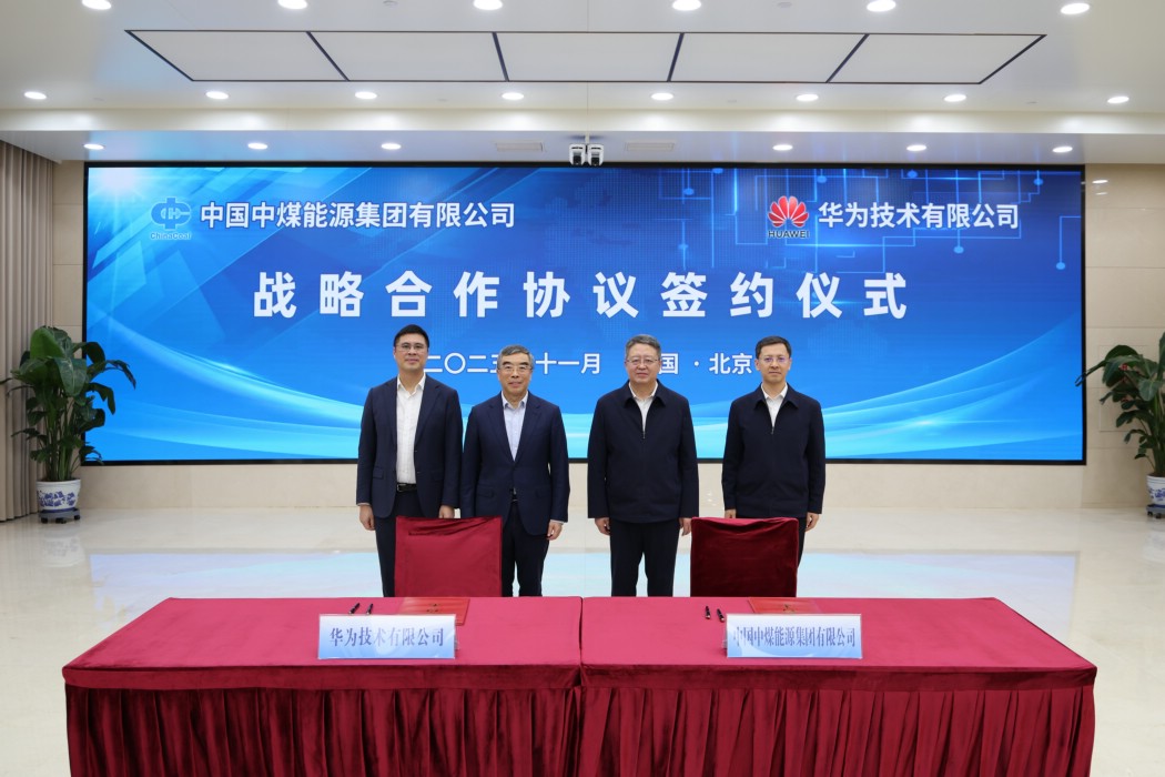 11月6日,中国中煤与华为签署深化战略合作协议。中国中煤党委书记、董事长王树东在集团公司总部会见华为董事长梁华并见证签约。中国中煤党委常委、副总经理倪嘉宇,华为油气矿山军团副总裁陈银绪分别代表双方签署协议。